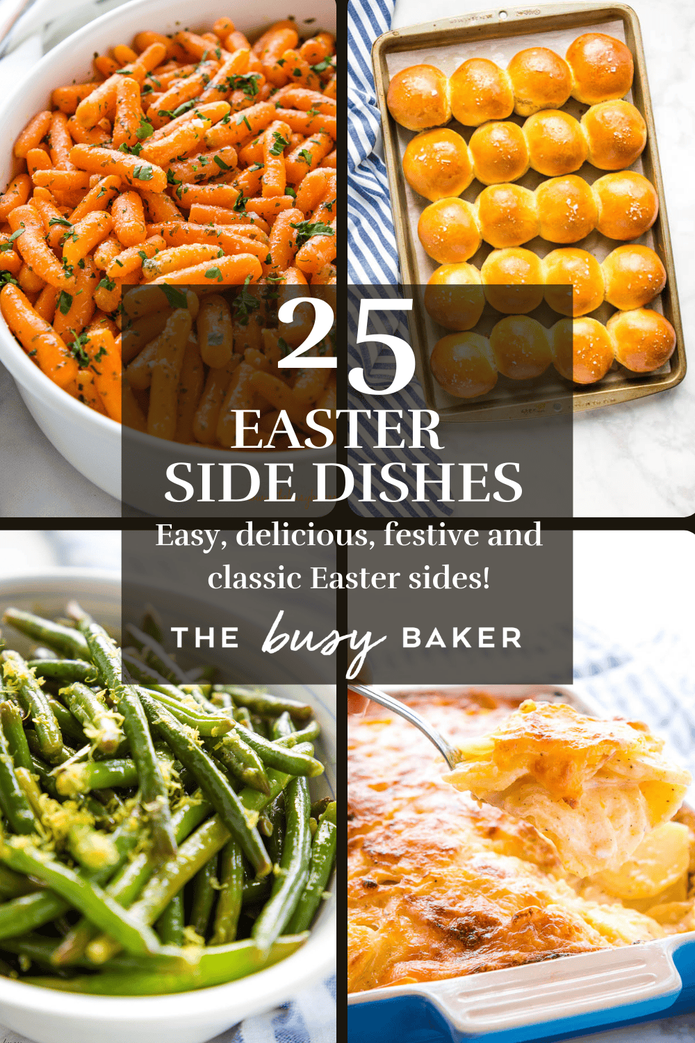 No Easter dinner is complete without the perfect sides to round out the meal. This collection of 25 Easter Side Dishes includes all the classics, from creamy potato dishes and fresh spring salads to roasted vegetables, glazed carrots, homemade rolls, and more. Whether you’re serving ham, lamb, roast chicken, or beef, these easy and delicious side dishes will help you build a beautiful and festive Easter menu.