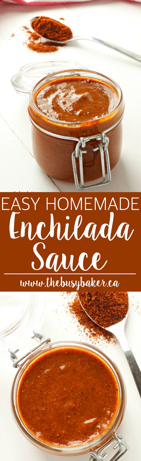 Now, to be clear, I am in no way an authority on authentic Mexican cuisine…I’ve visited northern Mexico and enjoyed the authentic food SO much, and I’ve had the opportunity to visit several Mexican restaurants in the US that served some of the most delicious food I’ve ever had. I’ve also done a lot of traveling in my 33 (almost 34, but who’s counting?) years and experienced some truly amazing local cuisine and some that was equally awful (food poisoning, anyone?). And while I’m no expert on re-creating the cuisine of any culture, I’d like to think that I do a pretty good job of keeping within the spirit of the cultural recipes I try as much as possible in my Canadian kitchen and for my Canadian family. As authentic or inauthentic as you may think this Easy Homemade Mexican Enchilada Sauce is, there’s no denying that it’s a tasty addition to anything Mexican-inspired, which is why we love it!