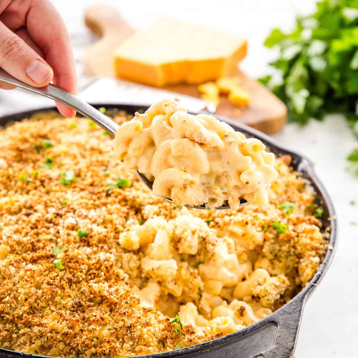 This Homemade Mac and Cheese recipe is the best old fashioned baked macaroni and cheese recipe – it's an easy baked mac and cheese casserole with a creamy cheese sauce & crispy topping!