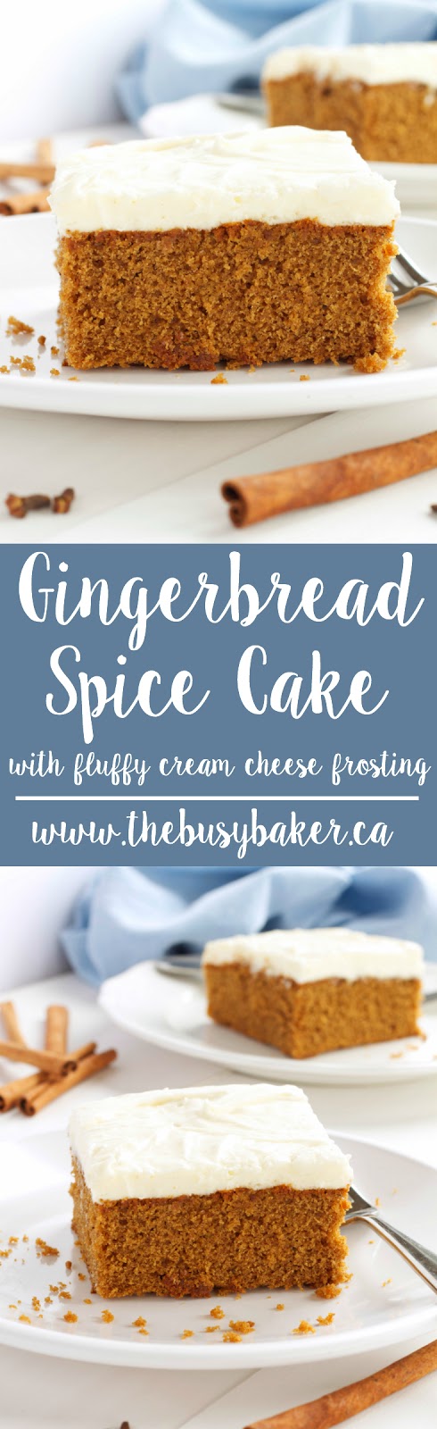 I’ve been making this Gingerbread Spice Cake with Fluffy Cream Cheese Frosting recipe for years. I originally came across this recipe from Chef Anna Olson and I’m SO glad I stumbled across it one day! It always turns out SO well – moist and dense, but at the same time it’s so tender and just a little bit fluffy, so topping it with a deliciously creamy frosting is definitely the way to go. And what’s even better is that you don’t have to fuss with making a layer cake – this recipe is perfect for a simple rectangular baking pan and serving it sheet cake-style works beautifully. Trust me, you’re definitely going to want to add this one to your holiday baking list this year!