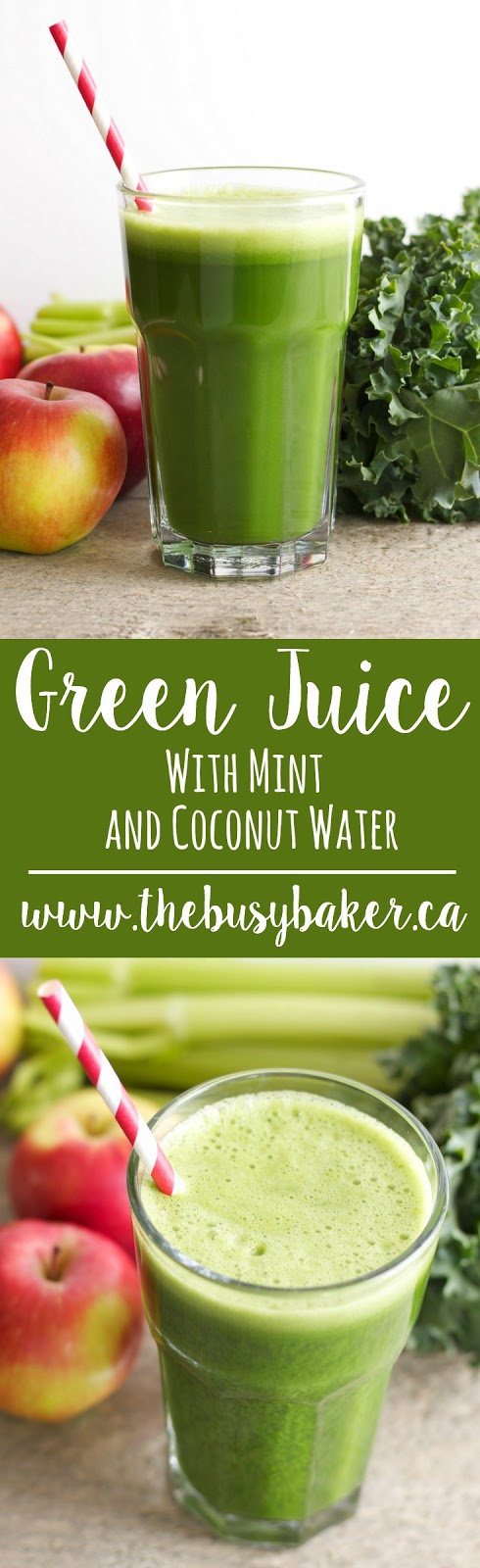 Now before you say anything, I’m fully aware that most food bloggers celebrate their one-year milestone with some sort of decadent layer cake recipe or another equally indulgent dessert. As much as I would have loved to do that, I’m on a bit of a health kick right now so I thought it would be more fitting to say “cheers” with this deliciously refreshing green juice with coconut water. Not to worry, I have a few amazing sweet treats coming your way in the next month because, let’s be real, it’s okay to eat cake sometimes too, right? Since the last 4 years of my life have been consumed by pregnancy and breastfeeding, I’ve felt at times like my body wasn’t my own anymore. Truthfully, it’s a small price to pay for these little miracles I now have in my life but nonetheless it has been difficult. Time to fit in workouts just isn’t always there anymore and healthy eating has also been a challenge because when you’re sleep-deprived, convenience foods are just so darn easy!! Writing this blog for all of you, my dear readers, has been so good for me in this last year. It’s motivated me to re-examine my food choices and it’s challenged me to create more and more healthy family-friendly recipes to make my life (and yours!) healthier and tastier. And it’s been a blast! I never imagined that my little blog would ever be viewed over half a million times, but here I am! And at one year, no less! So thank you to all of you who read my not-so-little-anymore blog! Thanks to all of you who follow me on Facebook, Twitter, Instagram and Pinterest, thanks to all of you who share my recipes on social media, and thanks to all the wonderful blogger friends I’ve met along the way who have given me advice, and supported me and cheered me on (you know who you are!). If year 1 was this great, I can’t wait to see what year 2 will bring! Bottoms up, friends!