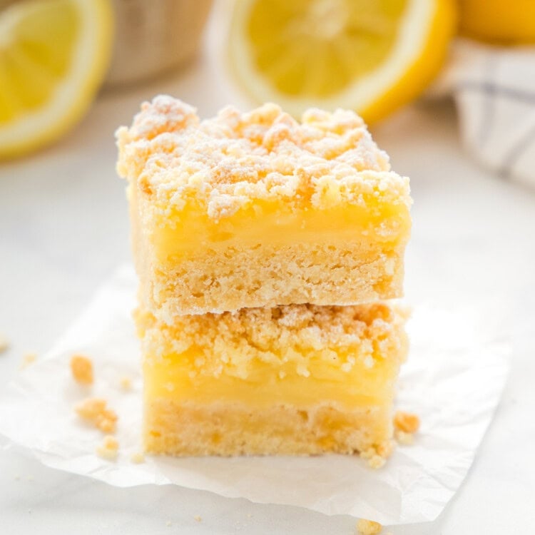 Because of the lemon filling, these bars are best stored in an airtight container in the fridge. They’ll keep well for about 4 to 5 days and are actually very nice chilled.