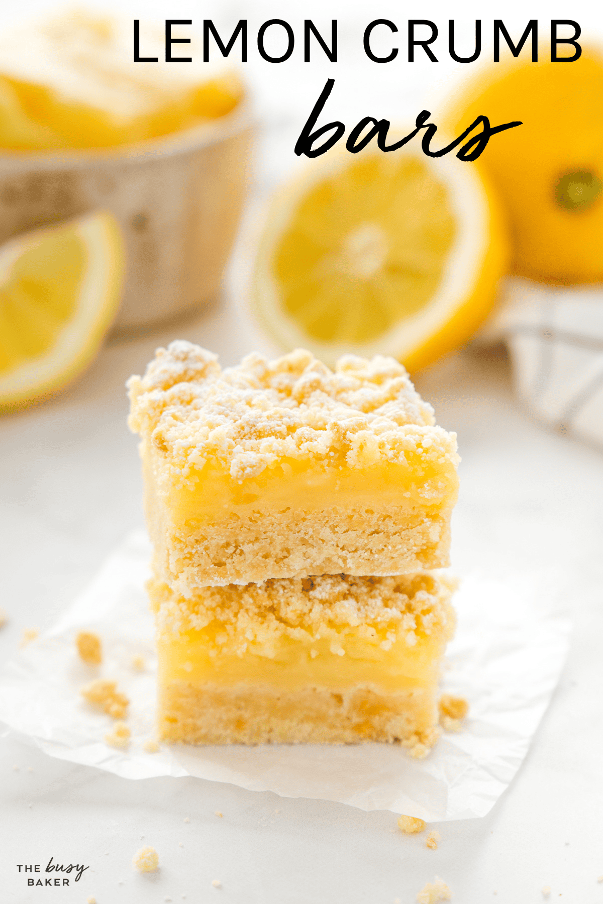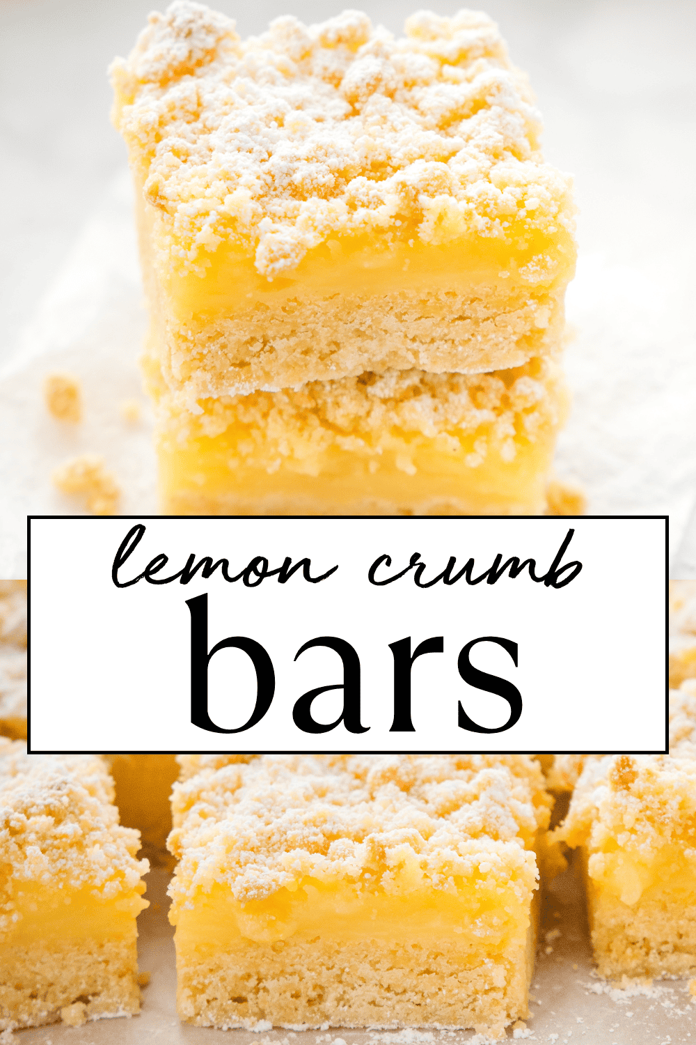 What makes them especially great is how easy they are to pull together. You make one simple crumble mixture for both the base and the topping, layer it with lemon curd or prepared lemon pie filling you can buy from the grocery store, and bake everything in one pan. It’s a perfect low-fuss dessert that still looks beautiful once it’s cooled and sliced into bars. And if you want to make the filling from scratch, this is the perfect opportunity to try your hand at making Homemade Lemon Curd!