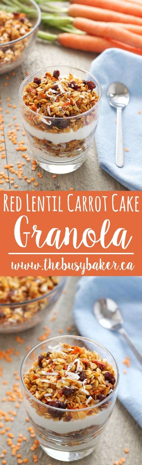 - Feel free to enjoy some of this Red Lentil Carrot Cake Granola right out of the oven while it's warm, or let the granola cool completely on the baking sheet