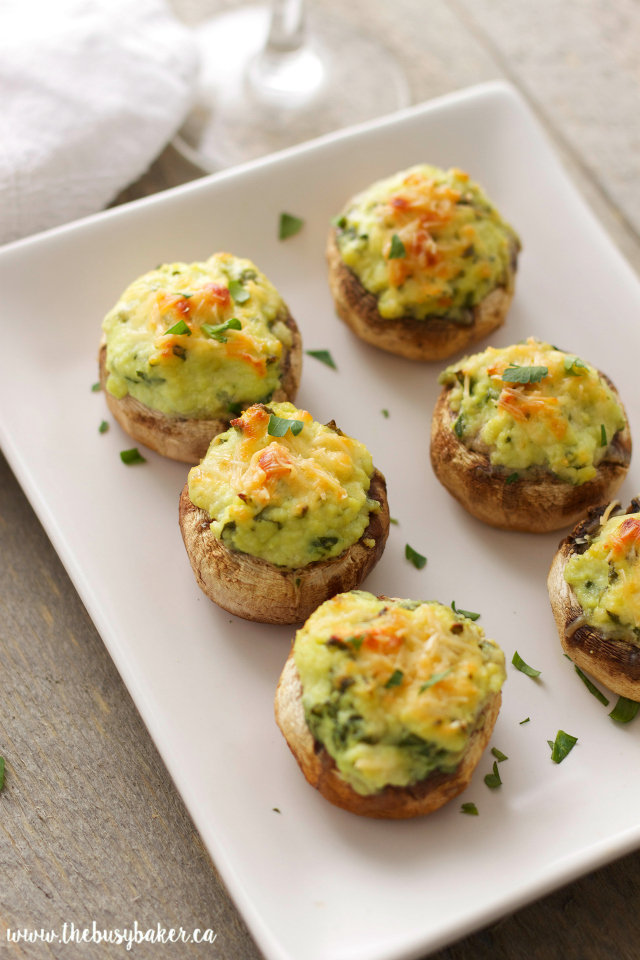 Stuffed mushrooms have always seemed so classy to me, but I’ve always known they were simple to make. And it doesn’t get much easier than this recipe! A simple ricotta cheese mixture stuffed into white mushrooms, topped with some fresh Parmesan, and then baked to perfection! The ricotta keeps these stuffed mushrooms tasting light and fresh and the spinach adds a beautiful colour and an earthy flavour. If you love appetizers as much as I do, this is definitely a recipe you need in your collection!