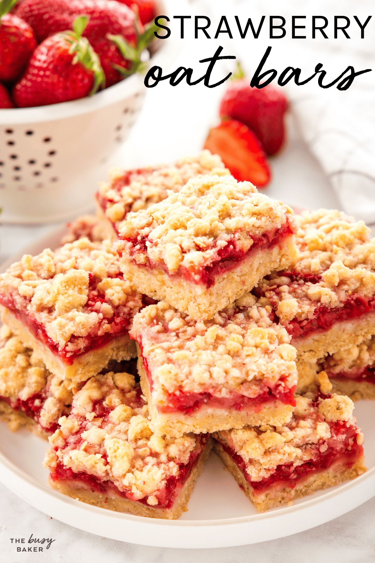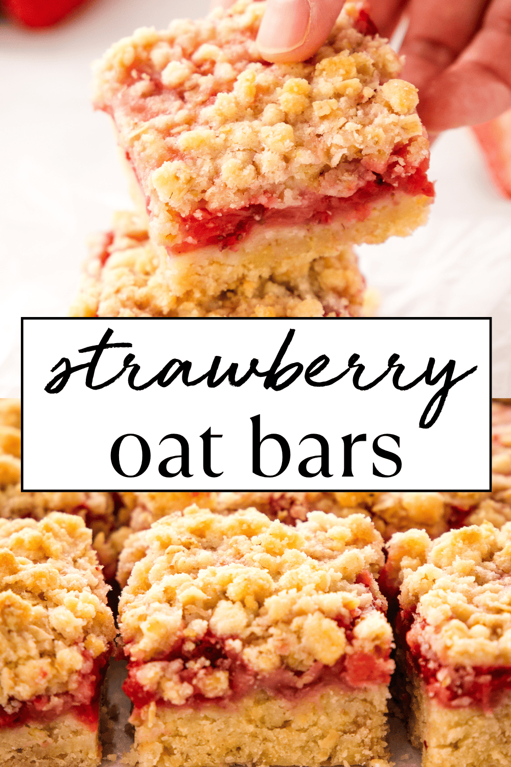 These Strawberry Oat Bars are buttery, crumbly, and packed with sweet fresh strawberries. An easy strawberry oat bar recipe with a tender shortbread oat crust and fruity filling that’s perfect for dessert, snacking, or summer baking.