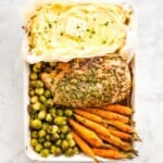 After the 20 minutes have passed, add the sprouts and carrots on the other side of the turkey breast and bake for another 20 minutes or until the internal temperature of the turkey breast is 165 degrees Fahrenheit (74 degree Celsius).